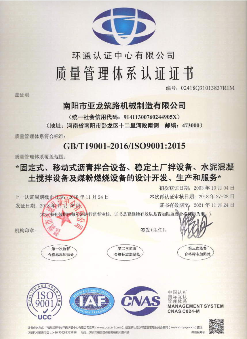 質(zhì)量管理體系證書
