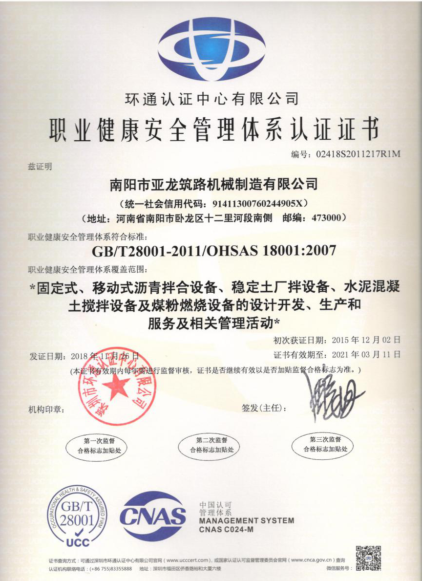 職業(yè)健康安全管理體系證書