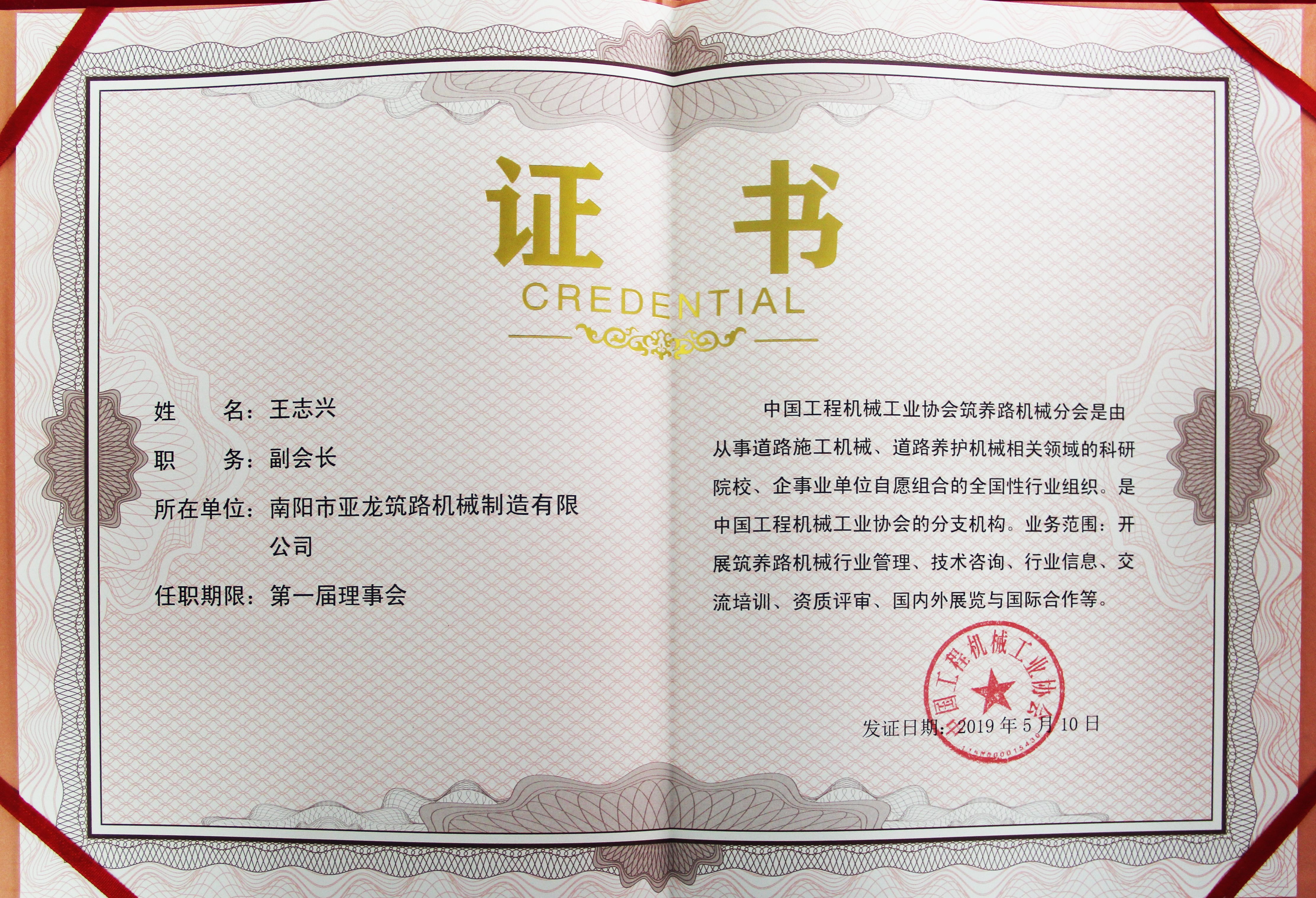 工程機械工業(yè)協(xié)會筑養(yǎng)路機械副會長
