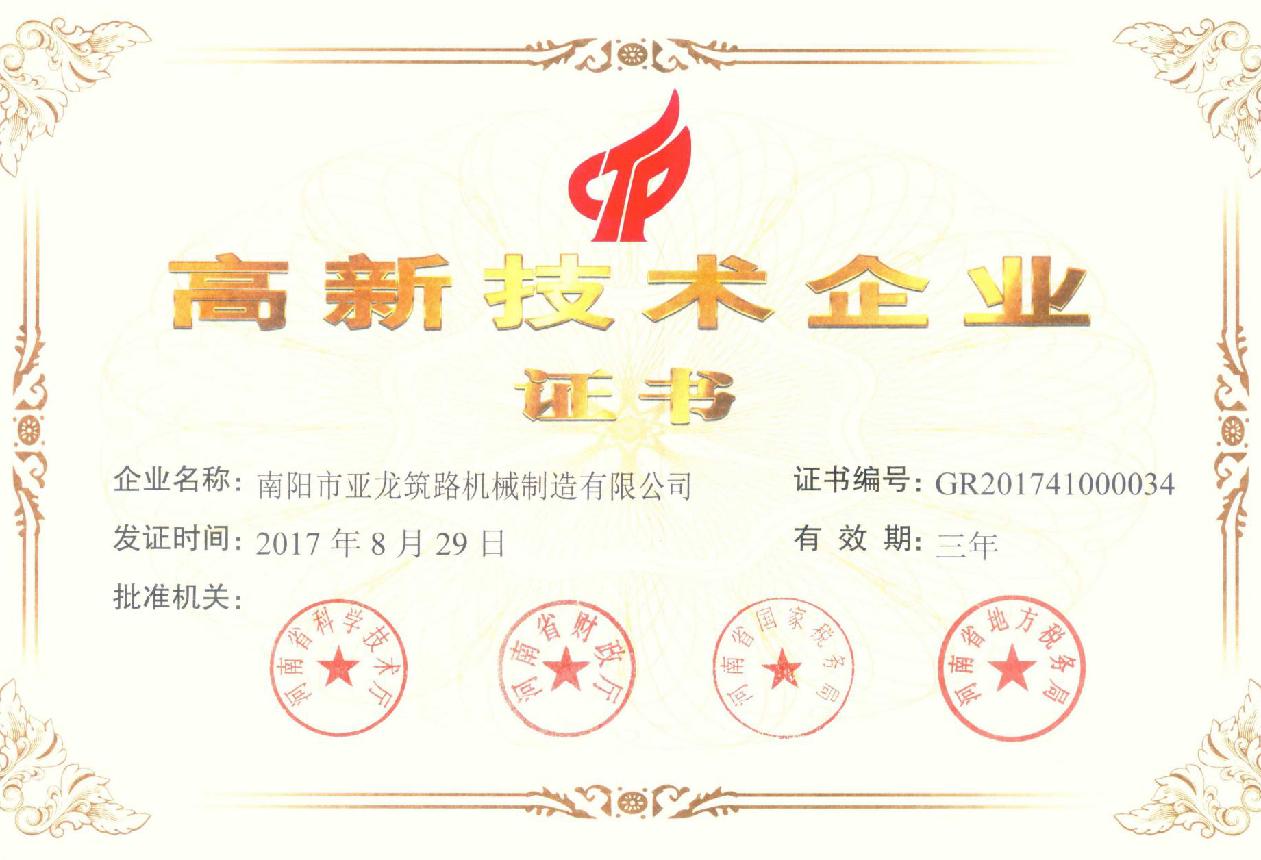 國家高新技術(shù)企業(yè)證書