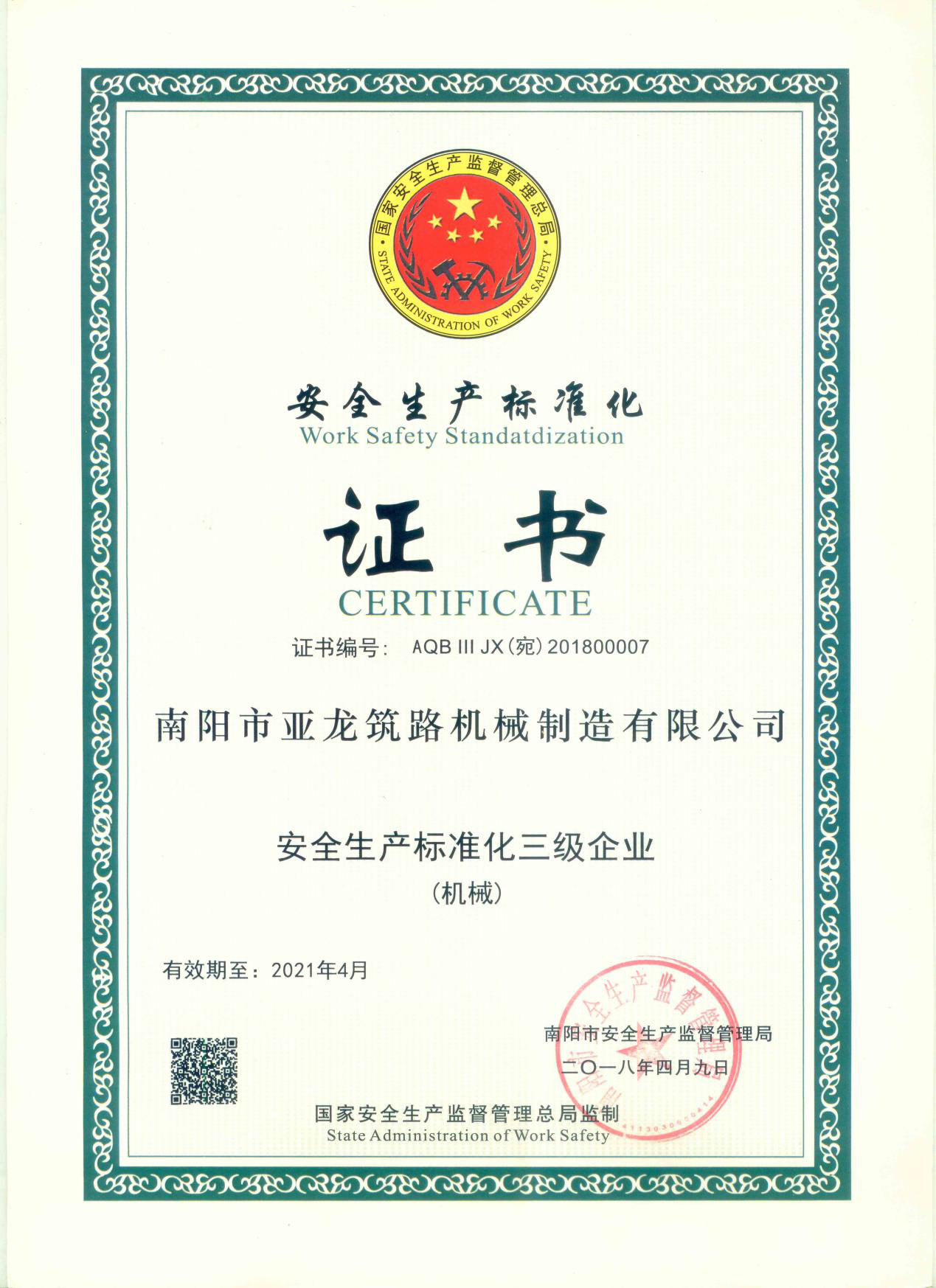 安全標(biāo)準(zhǔn)化三級企業(yè)